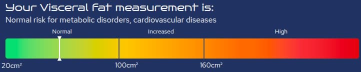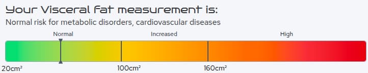 There is a correlation between the area of visceral fat in the body, metabolic health and healthspan. A DEXA scan can give a good analysis of accurate visceral fat score in kilograms and cm2, and has the added advantage of being able to give accurate results on other metrics such as bone density and lean mass.